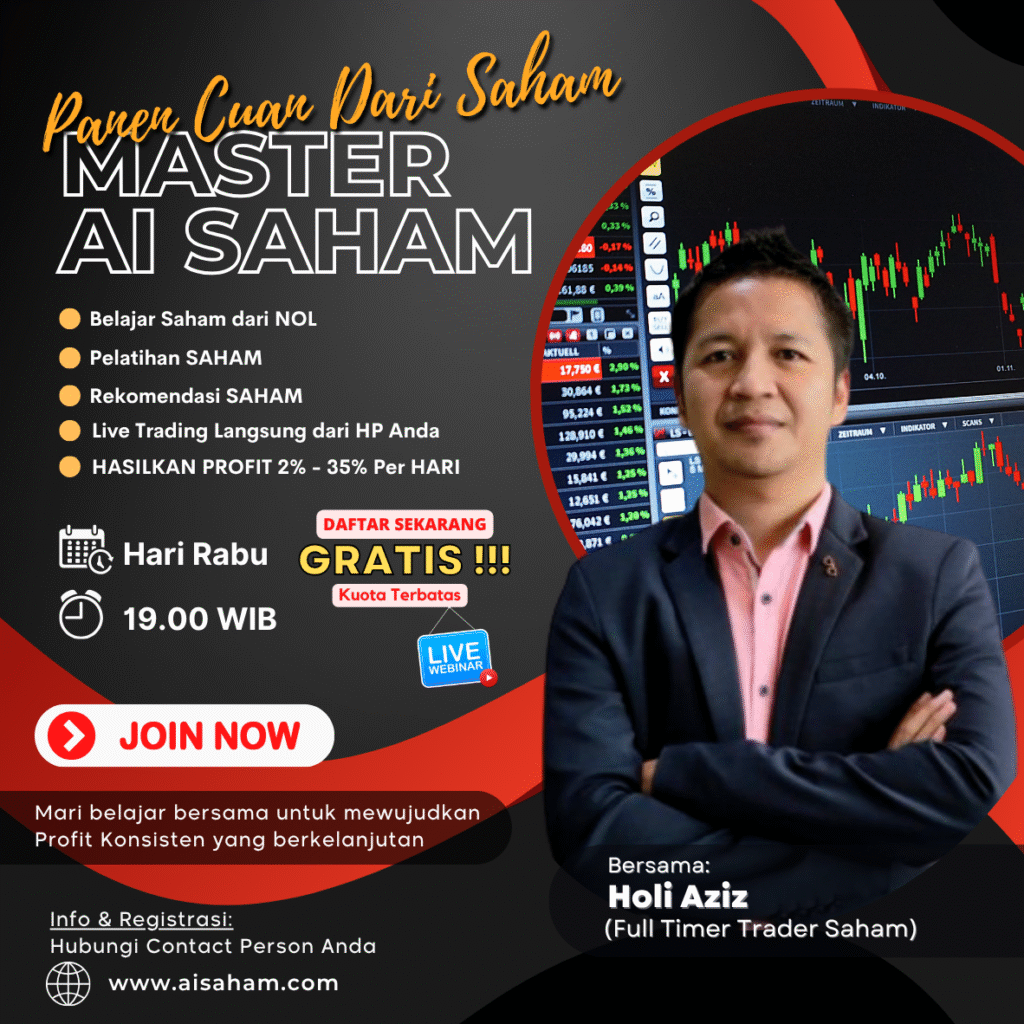 Dalam Webinar ini Akan dibongkar Strategi Simpel & Powerfull menggunakan AI SAHAM Untuk membantu Trading Lebih Percaya Diri